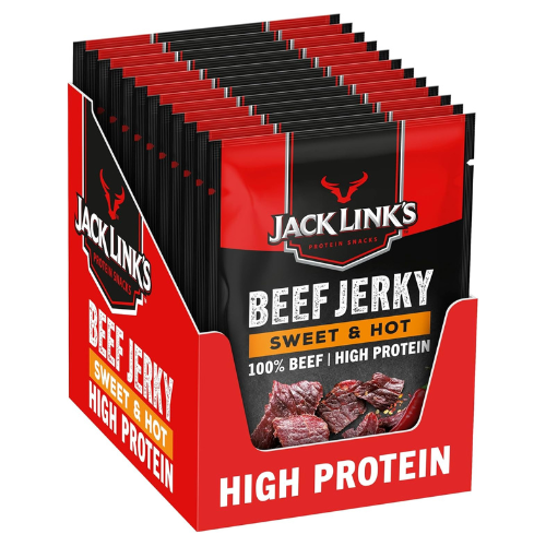 Best Before Date: 09/02/2026 Box of 12 x Jack Link's Sweet and Hot Beef Jerky (each pack is 25g) Sweet and Hot Beef Jerky (Halal) Fulfill all your cravings with our instant classic Sweet & Hot Beef Jerky. We use a delicious mix of brown sugar, fiery red chili peppers, and other flavorful ingr...