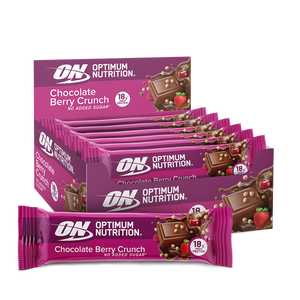 Fuel up with Optimum Nutrition’s Chocolate Berry Crunch protein bar.