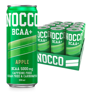 Whether when you’re on the go, at the gym or at enjoying a well-earned rest, NOCCO Apple is a great option. The flavour is free from caffeine, contains 5000mg of BCAAs and is ripe for the taking! A delicious, sugar free and carbonated beverage, enriched with vitamins. With an increased amount of BCAAs – 5000mg per can compared to 3000mg present in the caffeinated versions – the caffeine-free Apple is also sugar free and contains 50% of the daily recommended value of vitamin B6, vitamin B12, biotin and niacin.